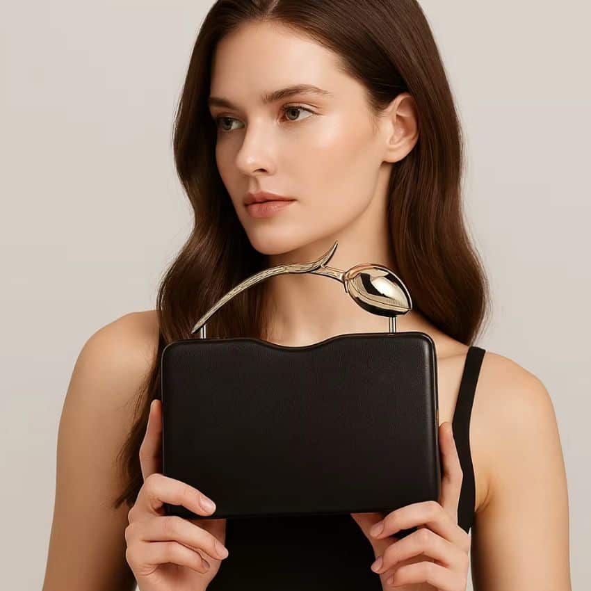 Designed with decorative crystal and diamond lattice-inspired accents, the bag adds a sophisticated sparkle to any outfit. The secure magnetic closure keeps essentials safe, while the detachable chain strap allows it to be worn as a clutch, shoulder bag, or crossbody handbag.