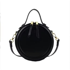 Retro Round PU Leather Shoulder Bag – Women’s Adjustable Crossbody – Handbag with Chain Detail – Black